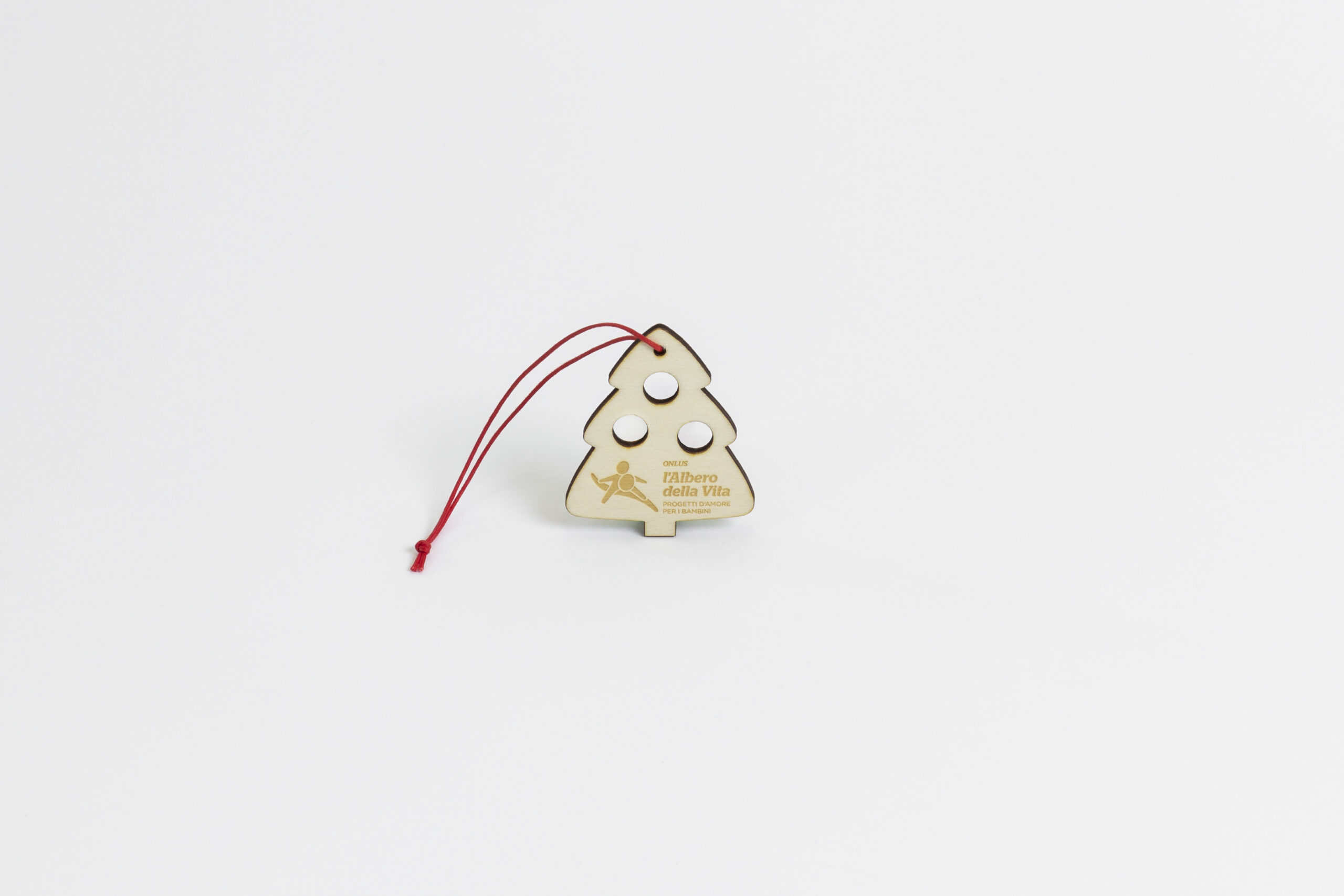 Decorazione di Natale con il logo de L’Albero della Vita è100% made in Italy ed ecologica, realizzata in legno di pioppo certificato sostenibile. Una perfetta aggiunta solidale ai vostri regali di Natale aziendali.
